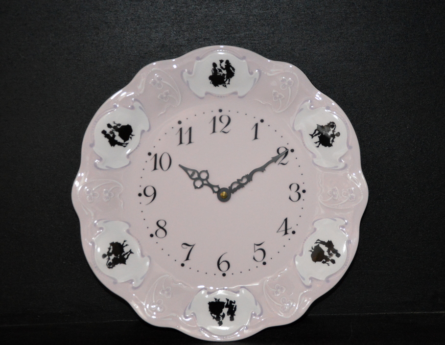 Hodiny talířové Olga 418, růžový porcelán, 24cm